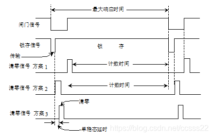 方案2是利用锁存脉冲的上升沿产生清零脉冲。这样可以保证闸门信号的高电平期间计数器计数。但是如果锁存器的锁存延迟时间超过计数器清零的延迟时间,就可能使锁存器种锁存的各位信号全部是零。
