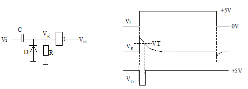 锁存脉冲和清零脉冲,可以用单稳态电路产生。单稳态电路可以用门电路构成,也可以用集成定时器或集成单稳态触发器。若对脉宽没有严格要求,也可以用较为简单的电路实现。图2-2-6为CMOS单稳延时电路及其时序图。如果CMOS与非门内部已有输入保护二极管,则图2-2-6中的二极管可以省略。