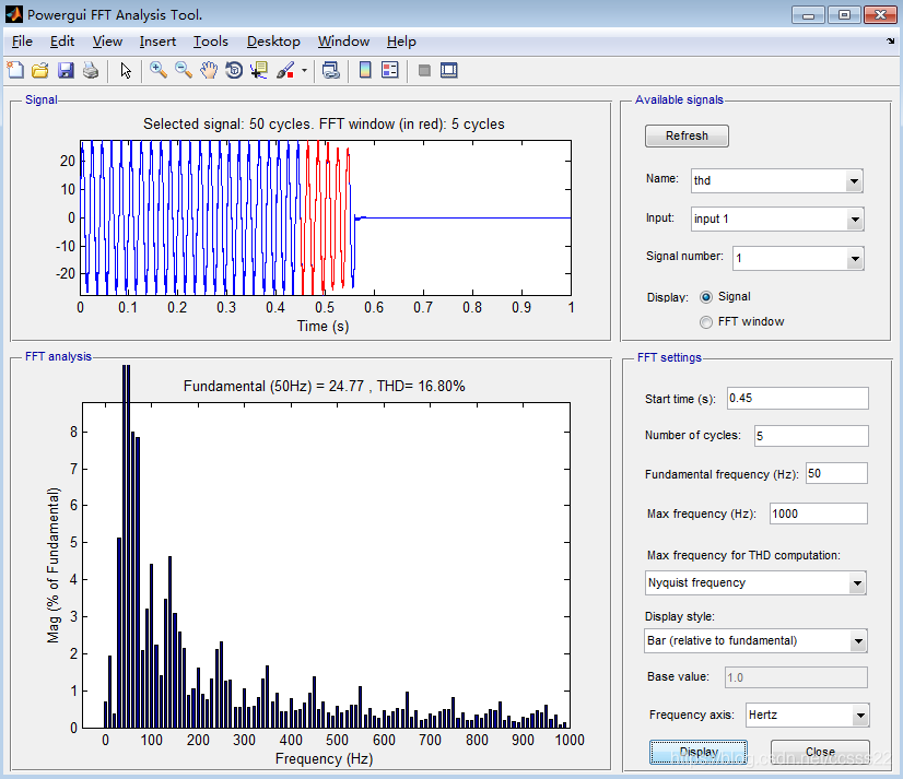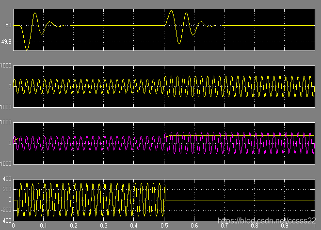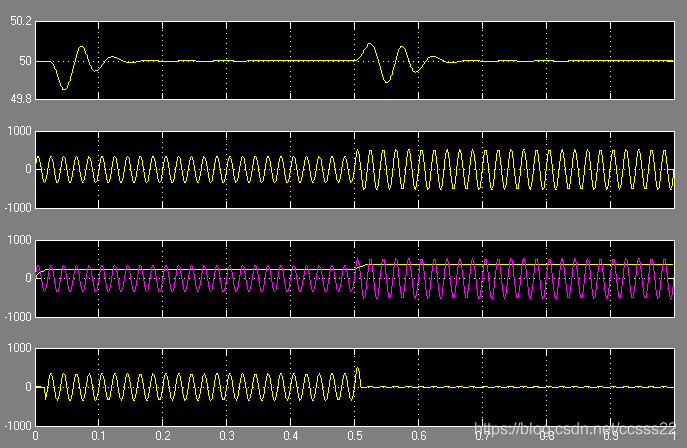 被动法的缺陷就是盲区较大,我们设置频率为50.5hz采用被动法仿真结果如下所示: