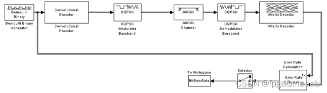 系统包括卷积编码,QPSK调制,信道传输,QPSK解调以及维特比译码。