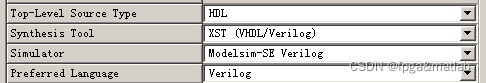 一般对于系统的仿真,我们均采用Modelsim进行,我们在建立工程的时候,将仿真设置为Modelsim,如下图所示: