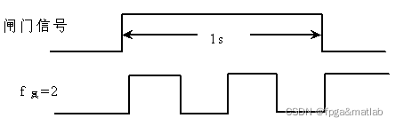 图中,秒脉冲作为闸门信号,当其为高电平时,计数器计数;低电平时,计数器停止计数。显然,在同样的闸门信号作用下,被测信号的频率越高,测量误差越小。当被测频率一定时,闸门信号高电平的时间越长,测量误差越小。但是闸门信号周期越长,测量的响应时间也越长。例如,闸门信号高电平时间为1秒,被测信号频率的真值为2Hz,如图3-2所示。