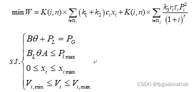 而在一个中长期电网规划中,需要考虑每一年的成本,那么电网规划总成本由新建线路总成本以及历年运行费用之和,那么公式中的目标函数可以改写为:
