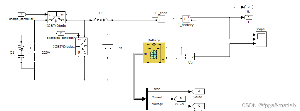 即蓄电池模型,通过控制器和飞轮模型连接,同时也是通过控制器进行充放电的控制操作。