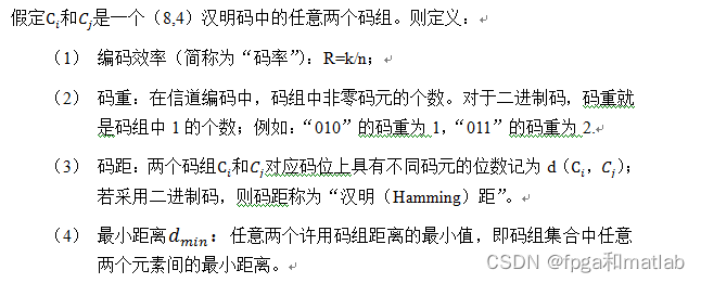 汉明码是一种高效的线性分组码,特别适用于纠正单比特错误。对于一个(8,4)汉明码,意味着编码后的信息共有8位,其中包含4位信息位和4位校验位。