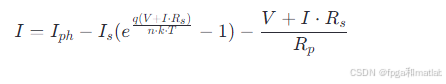 光伏电池的输出特性可以用电流-电压(I-V)和功率-电压(P-V)曲线来描述。典型的I-V曲线可以表示为: