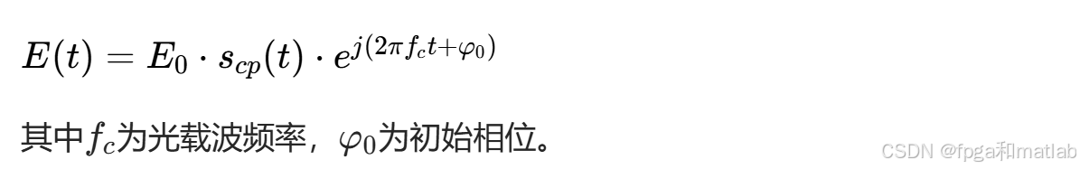 将离散时域信号scp[n]通过数模转换器(DAC)转换为模拟信号,再通过电光调制器(EOM)将电信号加载到光载波上,生成光OFDM信号送入光纤传输。光载波的电场表达式为: