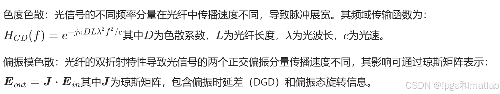 光纤信道对光信号的影响包括线性损伤和非线性损伤,其数学模型可表示为线性传输矩阵与非线性扰动的叠加。线性损伤主要包括色度色散(CD)和偏振模色散(PMD)。