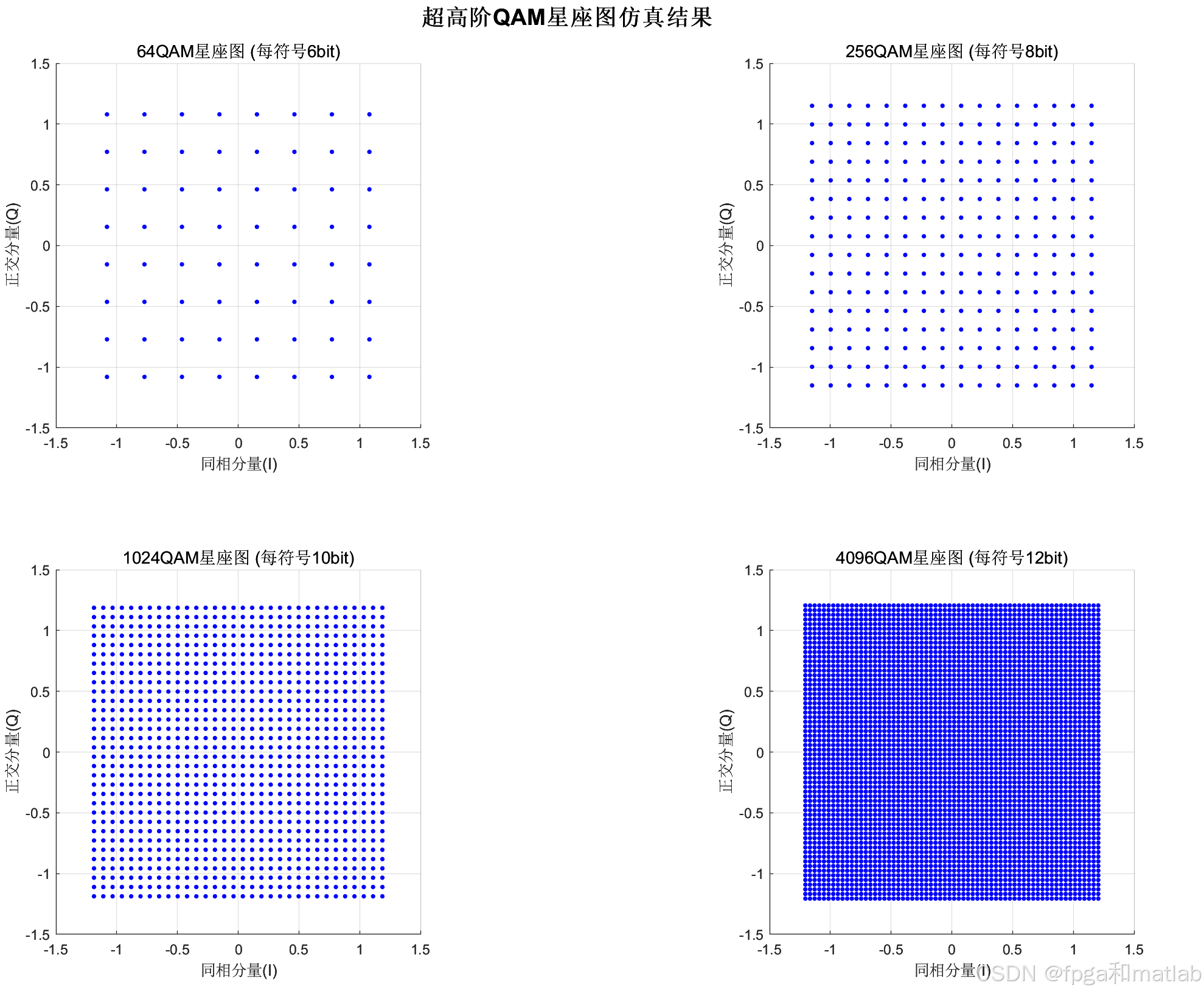 sgtitle('超高阶QAM星座图仿真结果', 'FontSize',16, 'FontWeight','bold');