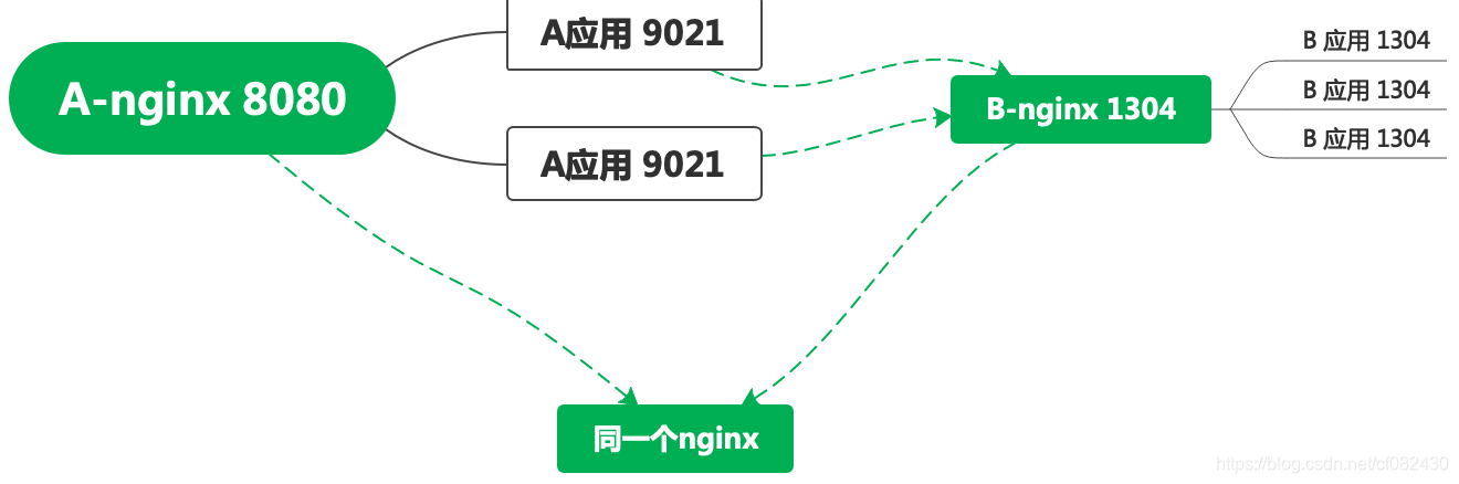 以下就是Nginx 、A、B的配置