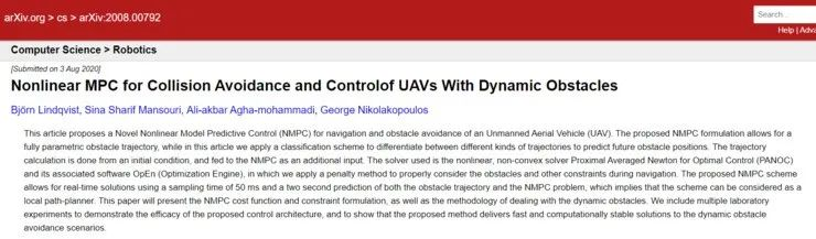 论文中提出一种基于非线性模型预测控制(Nonlinear Model Predictive Control ,NMPC)的计算技术,可以为无人机提供更好的自主导航和避障能力。