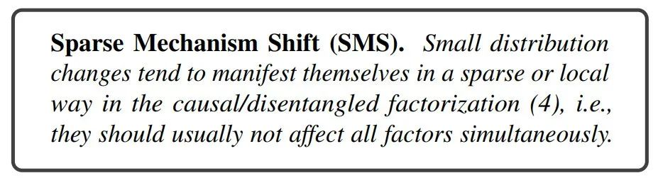 上文所有讨论都需要一种不依赖常见 i.i.d. 假设的学习范式。研究者希望做出一种较弱的假设:应用模型的数据可能来自不同的分布,但涉及的因果机制(大多)相同。