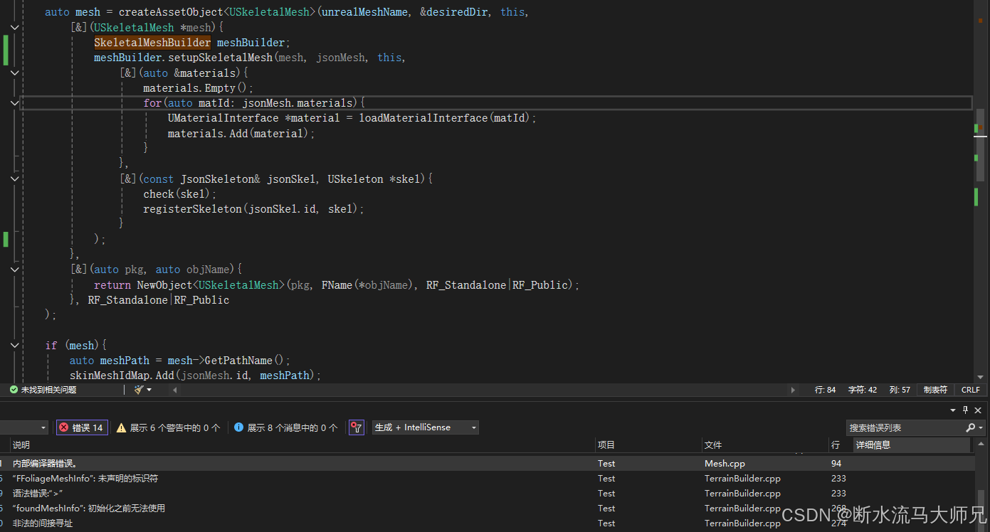 C1001 内部编译器错误 原来是引入头文件的时候路径有问题,修改后问题消失。刚接触c++,让我疑惑的是,为什么在lamda表达式中vs没有明确指出错误原因?不知道是vs配置问题还是什么,有没有人可以解答?但是这个类的定义也没有问题,于是把这行的代码移到lamda表达式之外编译试试。