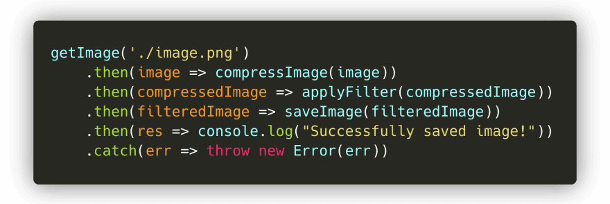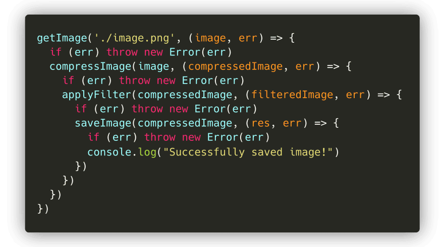 在前面的介绍章节,我展示了一个获得图片、压缩图片、为图片应用过滤器并保存它的例子!最终,这变成了一个混乱的嵌套回调。