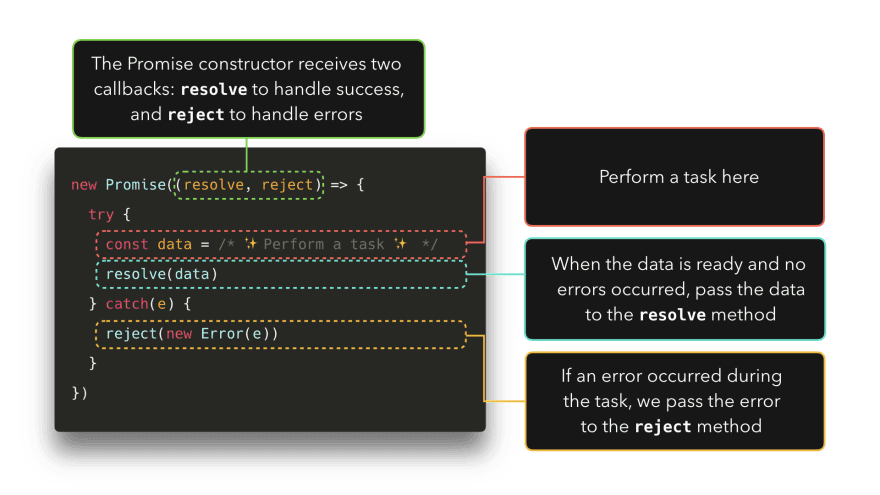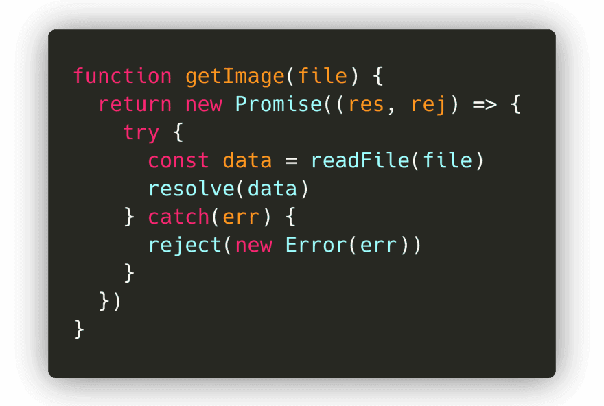 之前,我们看到不管是通过输入 new Promise(() => {}),Promise.resolve 或 Promise.reject,我们都可以显式的使用 Promise 对象创建 promise。
