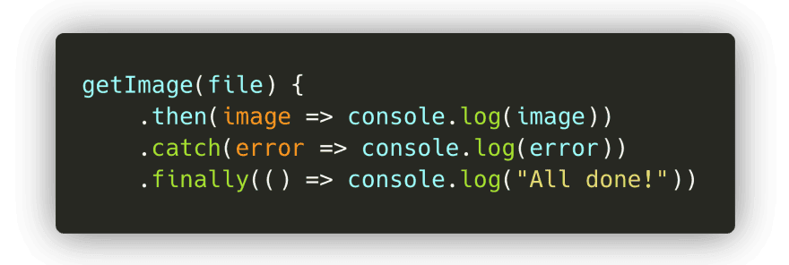在 getImage 示例中,为了传递被处理的图片到下一个函数,我们可以链接多个 then 回调。