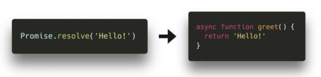 我们现在能够创建隐式地返回一个对象的异步函数,而不是显式地使用 Promise 对象!这意味着我们不再需要写任何 Promise 对象了。