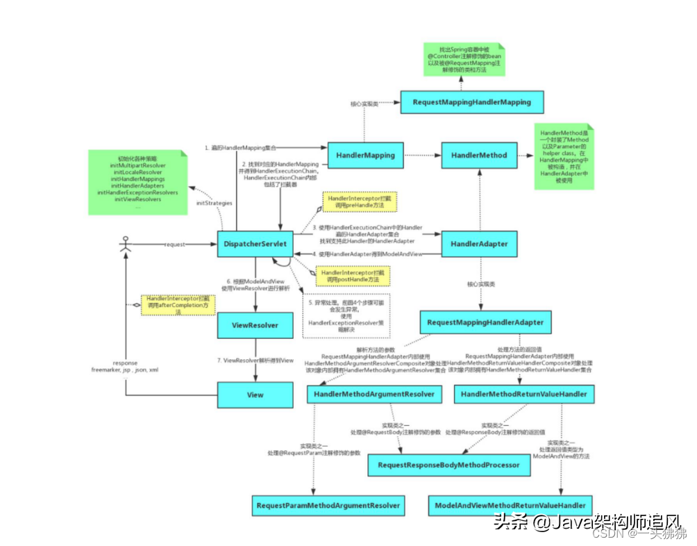 7)HandlerAdapter 将 controller 执行结果 ModelAndView 返回给 DispatcherServlet。8)DispatcherServlet 将 ModelAndView 传给 ViewReslover 视图解析器。