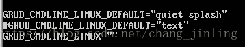 反之从命令行方式转换到图形界面方式,步骤一致,将text注释掉,启用default=”quiet splash”行。