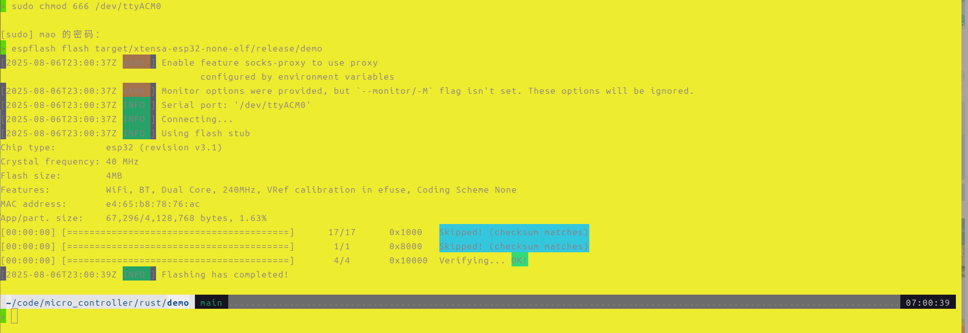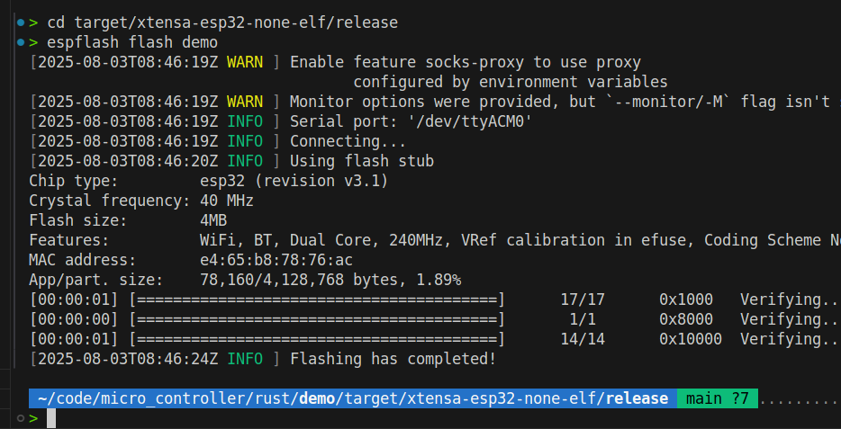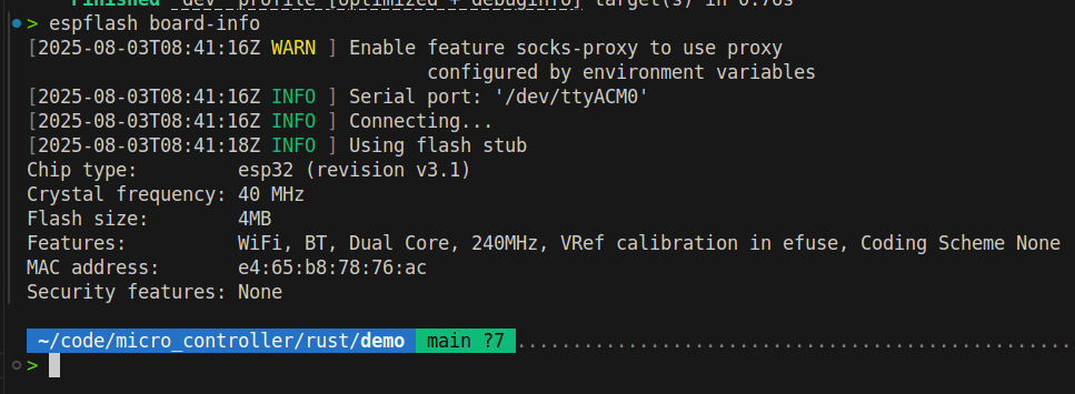 提示,可以用espflash board-info查看板子信息