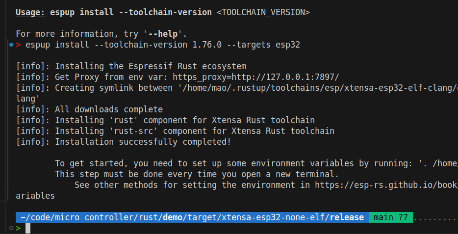 注,本人由于版本低的问题,导致配置esp环境耗费很长时间,开发esp平台,建议使用nightly版本,可以保证使用新的特性