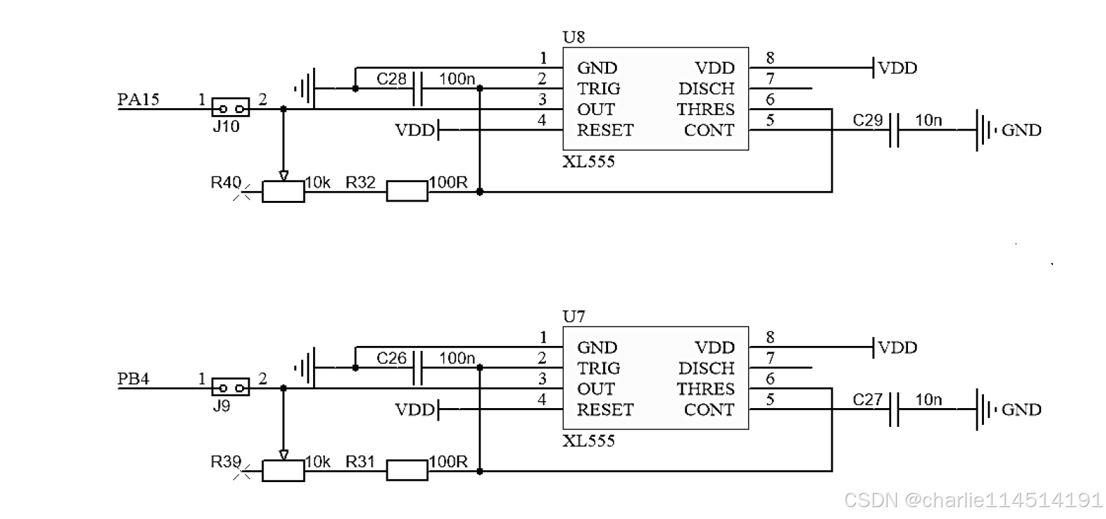 我们蓝桥杯的板子上有2个XL555定时器,这里,我们需要做的就是捕获我们PA15和PB4接口上产生的PWM定时器。还记得上一篇博客我们是怎么做的吗?这里是一样的:备考蓝桥杯嵌入式4:使用LCD显示我们捕捉的PWM波-CSDN博客