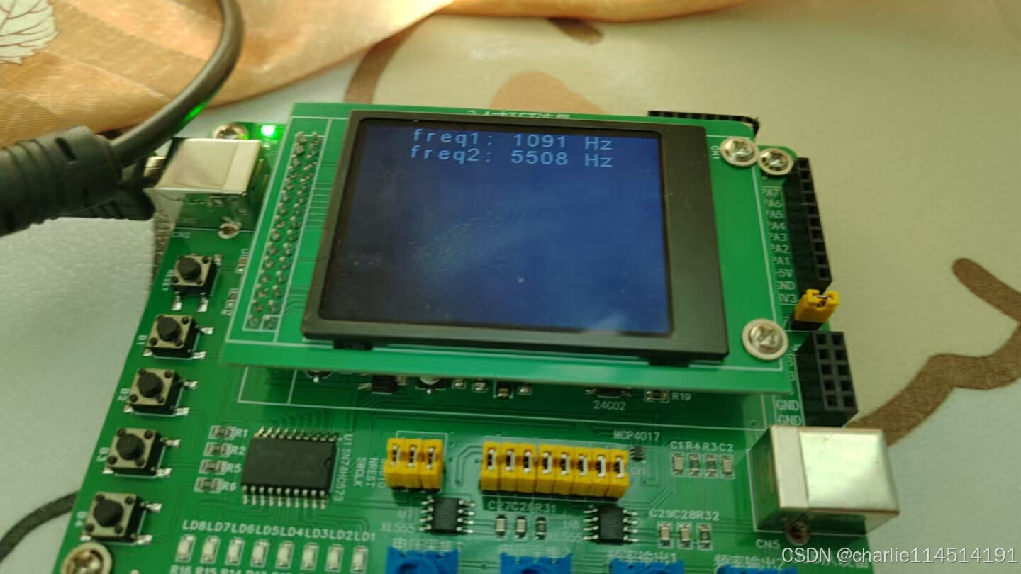void HAL_TIM_IC_CaptureCallback(TIM_HandleTypeDef *htim) { uint32_t capture_value = HAL_TIM_ReadCapturedValue(htim, TIM_CHANNEL_1); htim->Instance->CNT = 0; if(htim->Instance == TIM2){ freq2 = HAL_RCC_GetSysClockFreq() / ((htim->Init.Prescaler + 1) * capture_value); display_captured_frequency555(); // 直到发生采集了我们才求取 } if(htim->Instance == TIM16) { freq1 = HAL_RCC_GetSysClockFreq() / ((htim->Init.Prescaler + 1) * capture_value); display_captured_frequency555(); // 直到发生采集了我们才求取 } }
