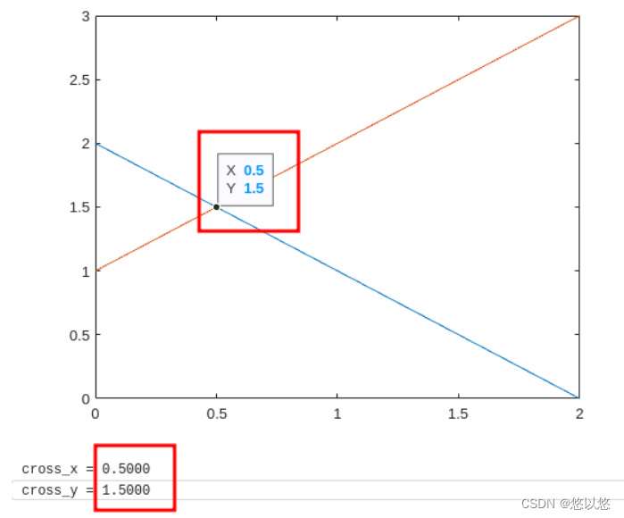 图形几何——直线:直线的表达式 将其中一条直线表示为点斜式的形式(这里以第一条直线为例)为了使用方便,将其用C++进行封装。分别为直线在x轴、y轴上的截距(将其代入到另一条直线的方程中,假设已知两条之间的一般式方程。以下用两个已知直线来验证结果。用matlab程序来验证结果。将它们改写为一般式则为。分别为直线上的不同两点。是直线在y轴上的截距。