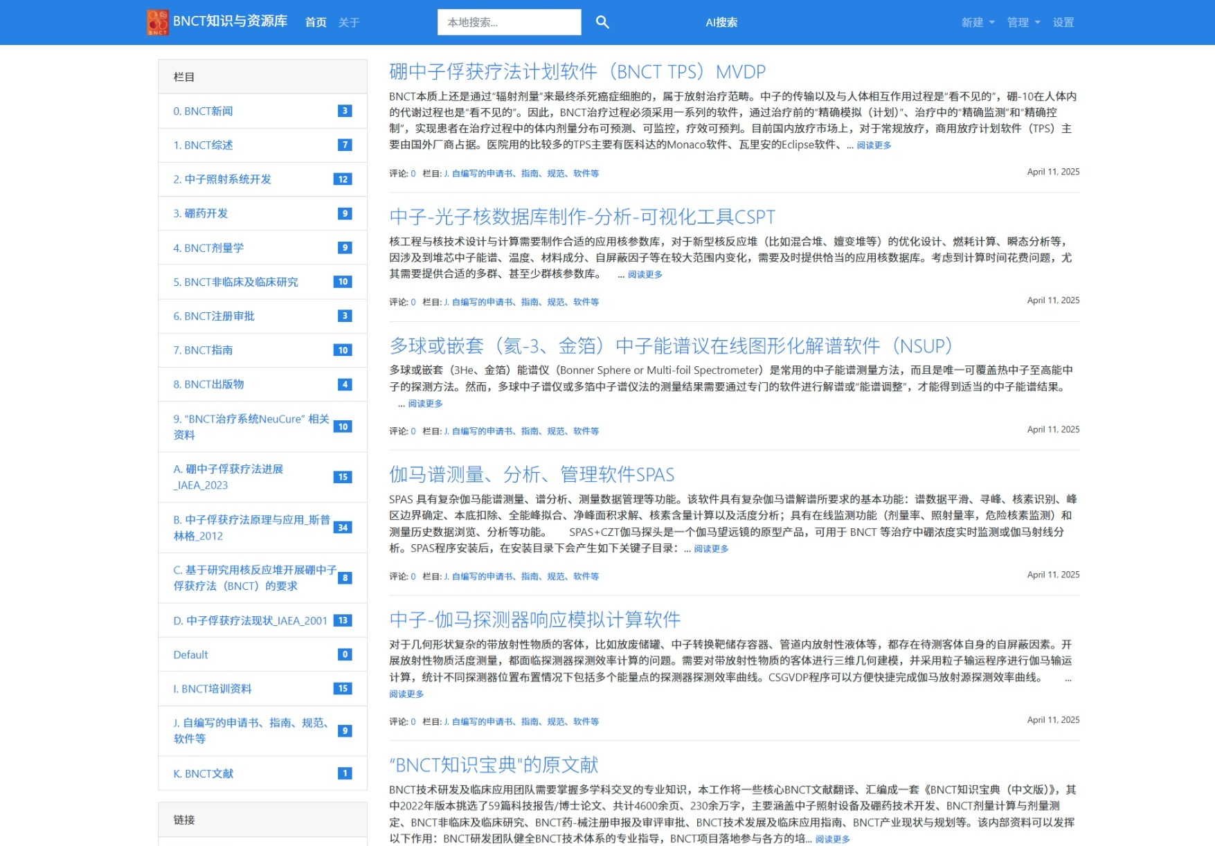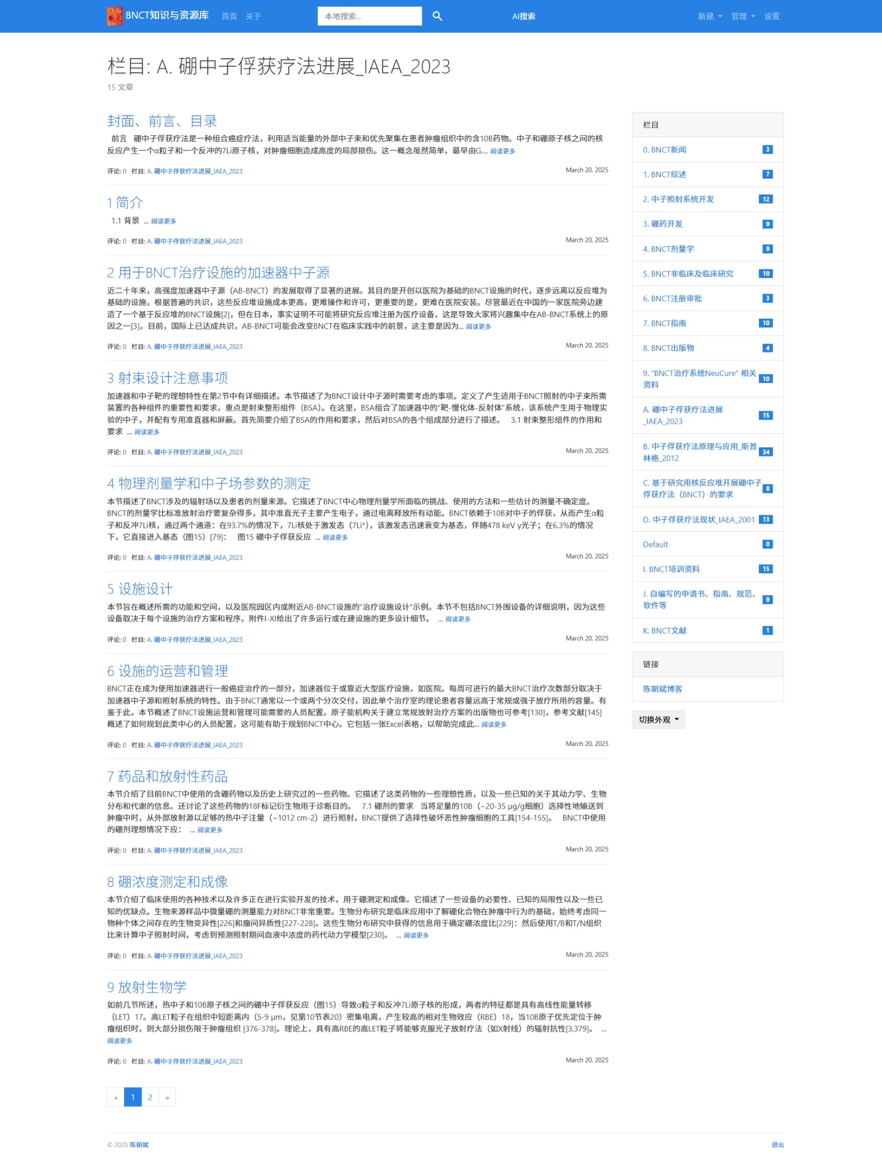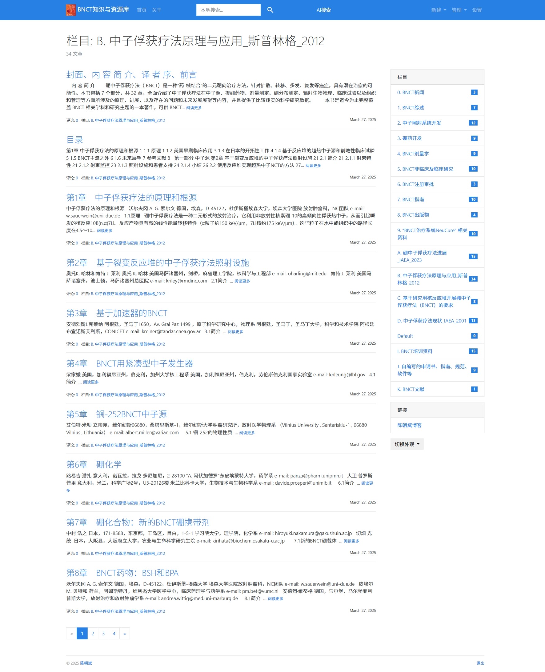 BNCT知识博客现有17个栏目,字数预计500万字。后续将把收集到BNCT参考文献、BNCT会议资料等也整合进博客中,实现一站式BNCT知识学习。