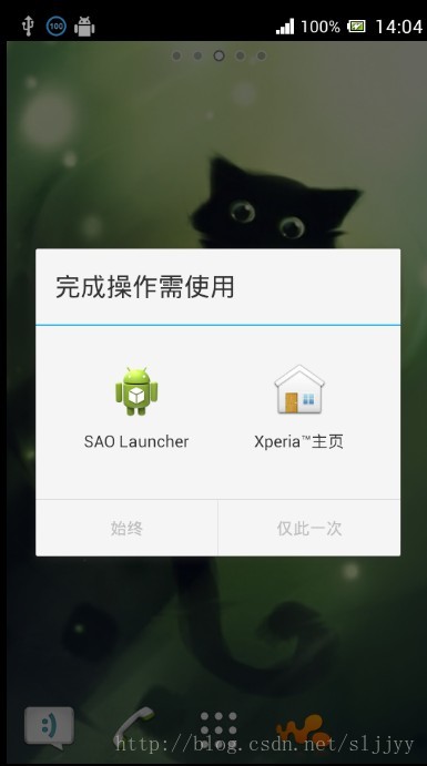 我们看到了,我们开发的SAO Launcher跟Xperia主页(索尼的home)出现在了一起。