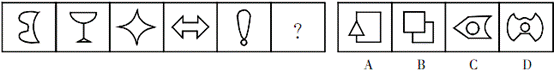 中公解析:题干所给的图形相对复杂,一般不会考查线条数,首先将此考点排除;大致观察一下封闭区域数,发现也不具有任何规律;考虑图形的曲直性,发现题干图形中均含有曲线,然而查看选项,C、D选项都符合这个要求,所以此规律也被排除。