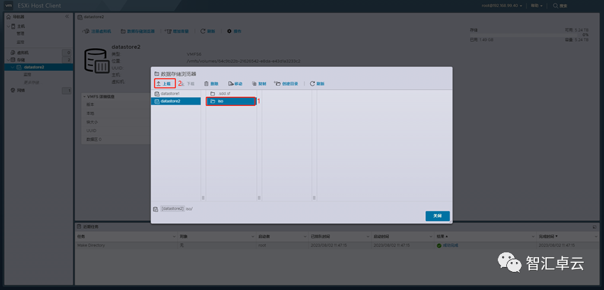 1、再安装之前需要先将镜像文件上传至ESXi的存储中。