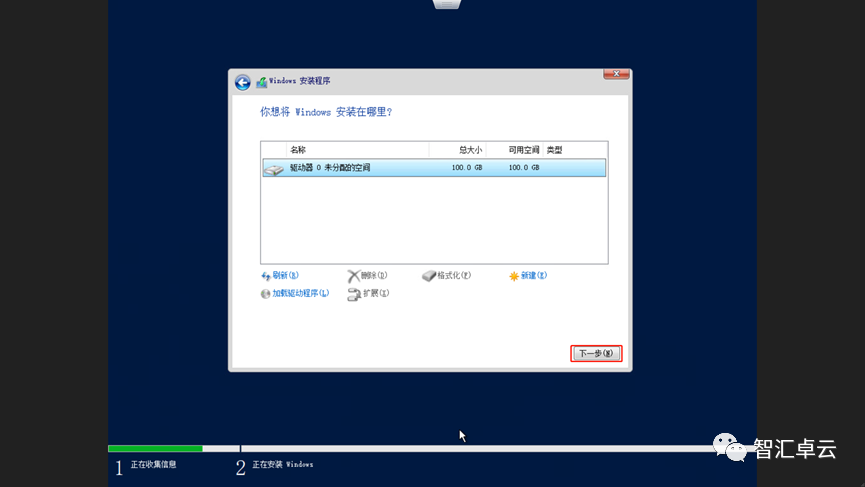 15、到这里可以对磁盘进行分区等设置,我们目前实验直接默认下一步。