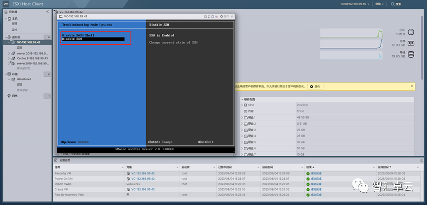 13、确认相关信息,点击“完成”,完成后就能够看到ESXi主机上的相关资源。