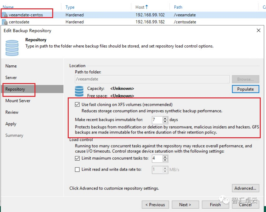 VeeamVBRv12新功能HardenedRepository可实现对备份存储库的加固,有效防止勒索软件和恶意程序对备份文件进行加密和删除。