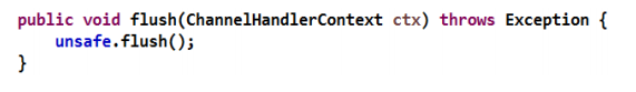 Flush 操作负责将 ByteBuffer 消息写入到 SocketChannel 中发送给对方, 下面我们首先从发起 Flush 操作的类入口,进行详细分析。 DefaultChannelHandlerContext 的 flush 方法,最终会调用的 HeadHandler 的 flush 操作,代码如下: