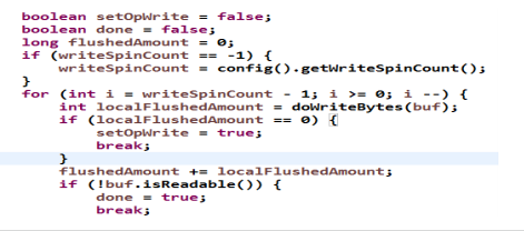 对写入的字节数进行累加,判断当前的 ByteBuf 中是否还有没有发送的字节, 如果没有可发送的字节,则将 done 设置为 true,退出循环。