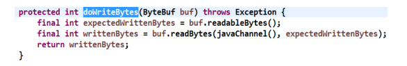 从 DefaultSocketChannelConfig 中获取循环发送的次数,进行循环发送, 对发送方法 doWriteBytes 展开分析,如下: