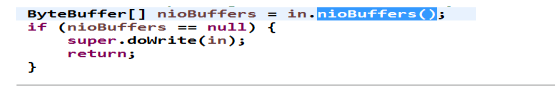 从 ChannelOutboundBuffer 获取需要发送的 ByteBuffer 列表,由于 Netty 使用的是 ByteBuf,因此,需要做下内部类型转换,代码如下: