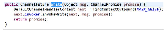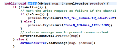 4.2.1 异步消息发送 下面我们从 ChannelHandlerContext 开始分析,首先调用它的 write 方法, 异步发送消息,代码如下: