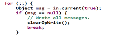 当 i = unflushed 时,说明需要刷新的消息全部赋值完成,循环执行结束。 对 ByteBuffer 数组进行判断,看是否还有单个需要发送的消息,如果没有 则直接返回,有则发送: