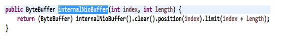 获取 ByteBuffer 实例,然后调用它的 clear() 方法对它的指针进行初始化, 随后将 Position 指针设置为 index, limit 指针设置为 index + length。这些 初始化操作完成之后 ByteBuffer 就可以被正确的读写。