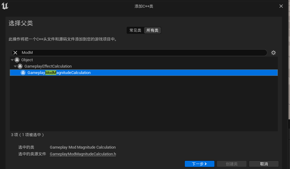 MMC 全称 Mod Magnitude Calculation,为自定义计算数值的类,可以使用蓝图继承,也可以使用c++继承,在这个项目里面我们使用的c++实现。