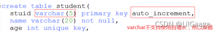 auto_increment自增长:自增长需要一般和主键一起使用,否则报错;唯一健和外健也可以,但是一般不用自增,都是留给主键使用