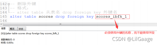 删除外键:alter table 从表名 drop foreign key 外键名