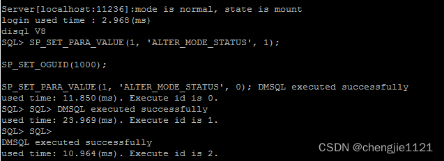 | ./disql SYSDBA/SYSDBA@localhost:11236 SP_SET_PARA_VALUE(1, 'ALTER_MODE_STATUS', 1); SP_SET_OGUID(1000); SP_SET_PARA_VALUE(1, 'ALTER_MODE_STATUS', 0); ALTER DATABASE PRIMARY;