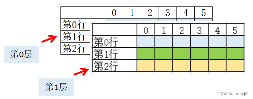 其形象结构如下,这里:维数=2;第1个维度是行,这里为3;第二个维度是每行的列数,这里为6。