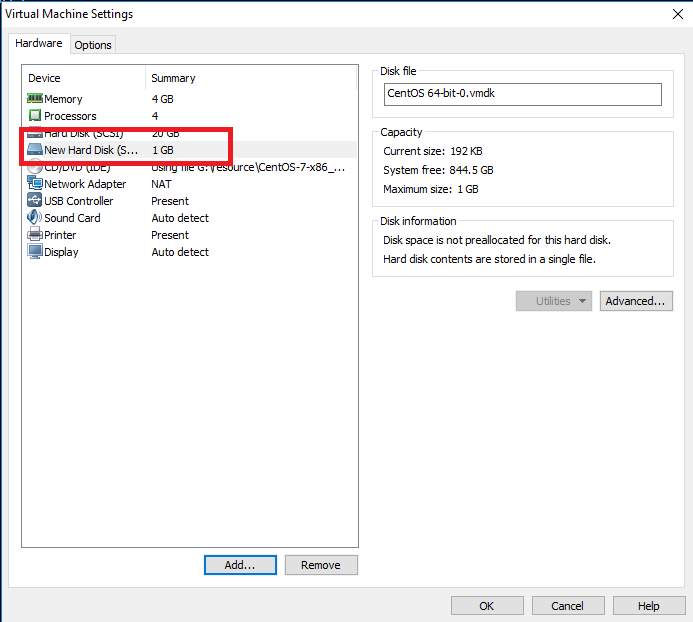 下面介绍如何增加磁盘。如果是物理机,那么关机后(虽然支持热插拔)增加磁盘然后启动就OK了,我们学习用的虚拟机也很简单,右键标签页设置