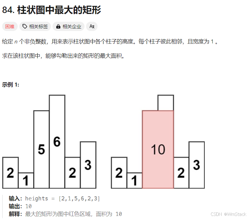 public static final int maxN=100001; public static int[]Stack=new int[maxN]; public static int r; //考虑每个矩阵能往左右两边扩的最大距离,其实单调栈最能得到的就是 哪一段区间的最小值或者哪一段区间的最大值! public int largestRectangleArea(int[] heights) { r=0; int ans=0; for (int i=0;i<heights.length;i++){ while (r>0&&heights[i]<=heights[Stack[r-1]]){ int cur=Stack[--r]; int left=r>0?Stack[r-1] :-1 ; ans=Math.max(heights[cur]*(i-left-1),ans); } Stack[r++]=i; } //清算阶段 while (r>0){ int cur=Stack[--r]; int left=r>0?Stack[r-1] :-1; ans=Math.max(ans,heights[cur]*(heights.length-left-1)); } return ans; }