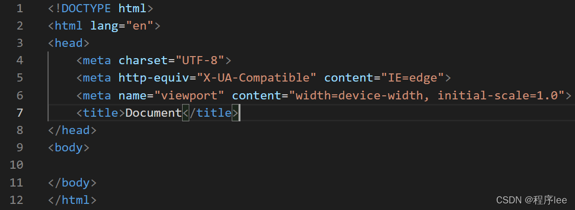 如下图,在我们使用VScode或其他编程软件时会经常输入以下命令,那么我们是否想过以下命令的含义呢? 实际上这些命令便是一个网页的基础结构,同时是用来告诉浏览器我们使用的是html语言,浏览器便能进行解析了。